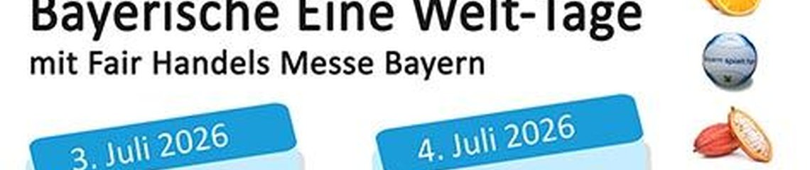 Am Freitag und Samstag, 3./4. Juli 2026, lädt das Eine Welt Netzwerk Bayern wieder zu den “Bayerischen Eine Welt-Tagen” mit “Fair Handels Messe Bayern” nach Augsburg ein. Auch 2026 bieten die „Bayerischen Eine Welt-Tage“ allen an Eine Welt-Themen Interessierten eine Plattform für Austausch sowie das Kennenlernen neuer Aktivitäten und Akteure. Begegnungen und Diskussionen sollen Ideen und Perspektiven für Aktivitäten vor Ort eröffnen. U.a. mit Gästen aus Einer Welt sowie Abgeordneten aus Deutschem Bundestag und Bayerischem Landtag.