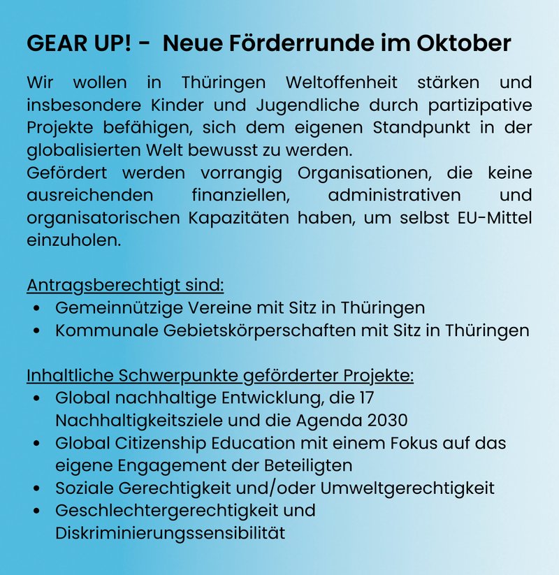 Ankündigung: 2. Förderrunde GEAR UP! in Thüringen ab Oktober 2025